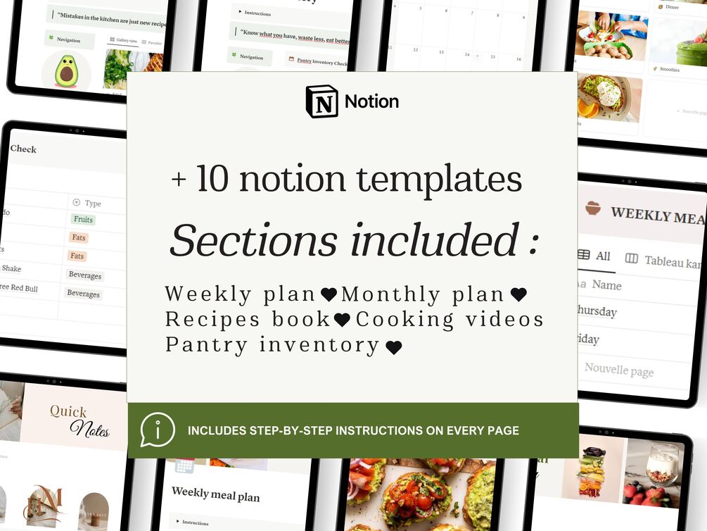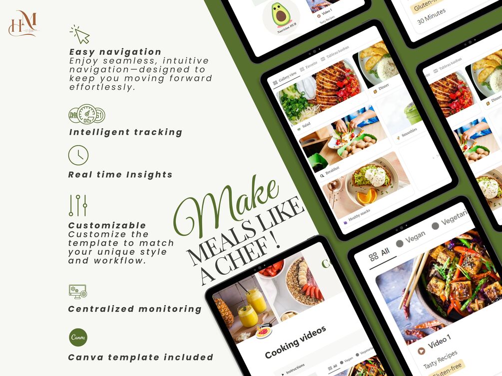 the ultimate Notion Nutrition Hub - a complete 2025 meal planning system featuring a customizable dashboard, smart recipe database, automated grocery lists, nutrition tracker, and pantry manager. This all-in-one template helps you save hours on meal prep while improving your eating habits, with intuitive tools for meal scheduling, macro tracking, expiration alerts, and cooking video organization - plus bonus Canva templates for personalization. Designed by nutrition experts, it works seamlessly across devices to transform your kitchen chaos into effortless organization.